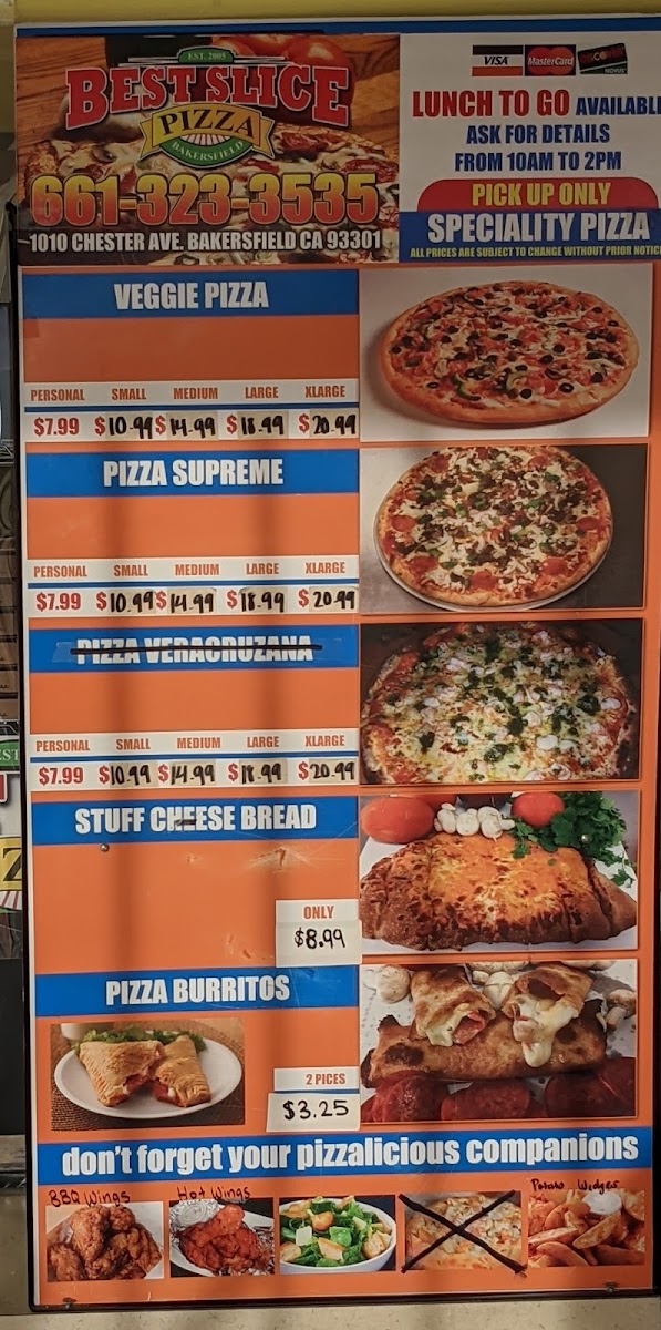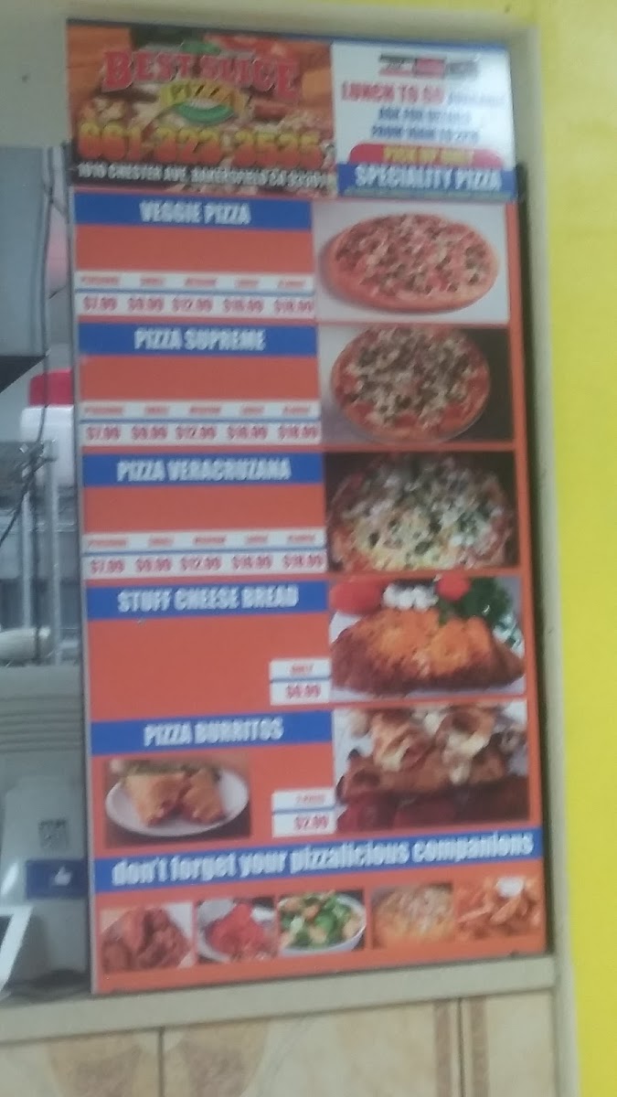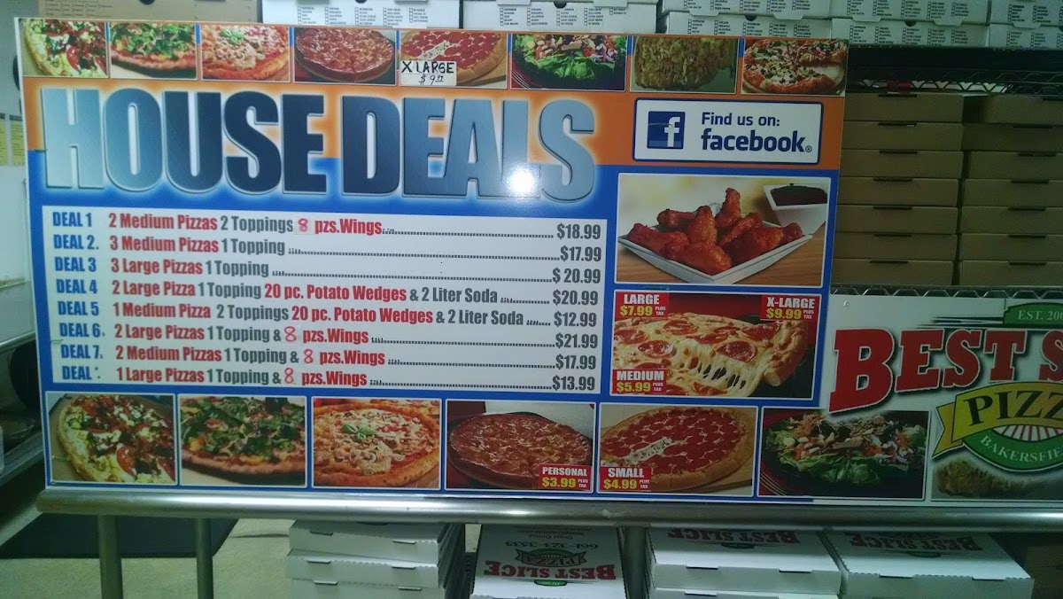 At Best Slice Pizza, you’ll find a variety of mouthwatering options that will satisfy your pizza cravings, whether you’re here for a quick bite or a leisurely meal. With every slice, the perfect balance of crispy crust, rich sauce, and melting cheese is guaranteed. Their menu features everything from classic cheese and pepperoni to creative specialty pies, each packed with fresh ingredients and bold flavors. Don’t forget to check out their unique toppings and side options like garlic knots and fresh salads. Whether you’re feeding the whole family or grabbing a slice on the go, Best Slice Pizza offers something for everyone, making it a go-to spot in Bakersfield.